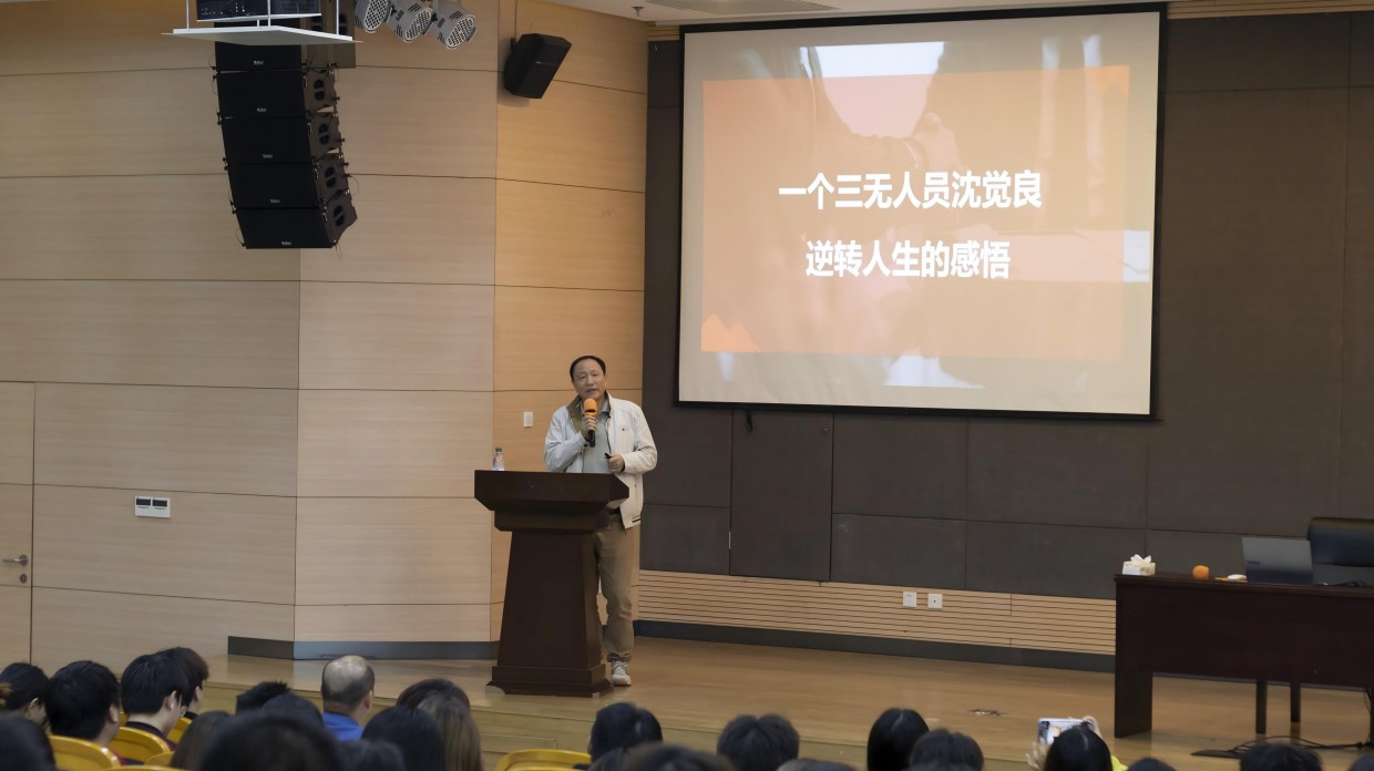 沈觉良站在台上,精神饱满、语气坚定。他没有讲大道理,也没有讲华丽的理论,只讲他的一生,如何从“没有”走向“拥有”。出身于当时社会政治上被歧视的家庭,他连上初中的资格都被剥夺。吃不饱、穿不暖,母亲重病、债务累累,走到哪里都抬不起头。那时的他,是一个“一无所有、尊严尽失、未来渺茫”的少年。
