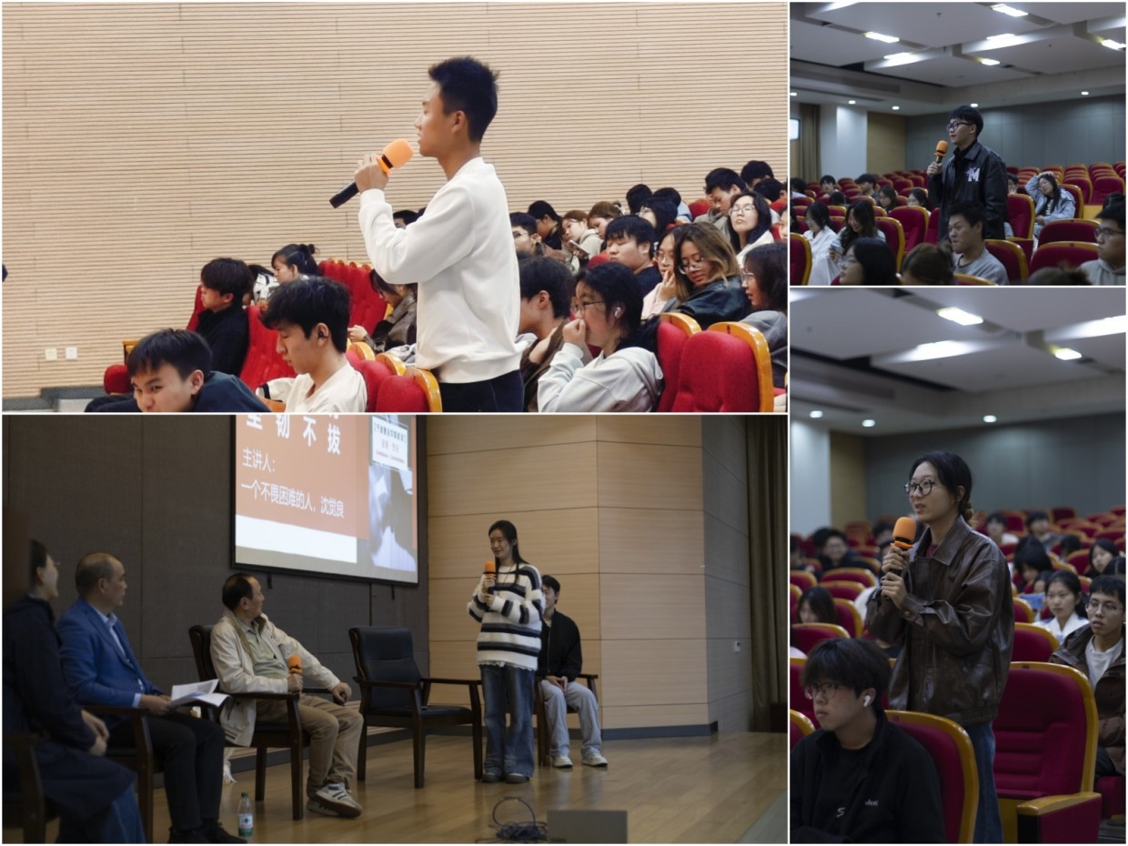 互动环节中,学生们踊跃提问:有人关心创业之路、有人纠结求职选择、有人困惑人生方向……面对每一个问题,沈觉良先生始终微笑、耐心、真诚地回应:“先别急着创业,要先苦练内功。”“别怕失败,站起来比摔倒更重要。”朴实的话语,却句句敲在年轻人的心里。那不是高高在上的说教,而是经历沉淀后的肺腑之言。